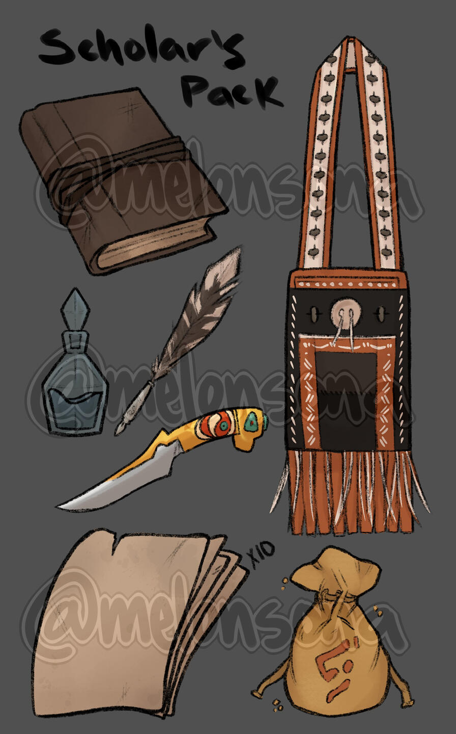 These are D&D/roleplaying type commissions. I will draw things to help flesh out your world or character. (items, accessories, familiars, etc.)